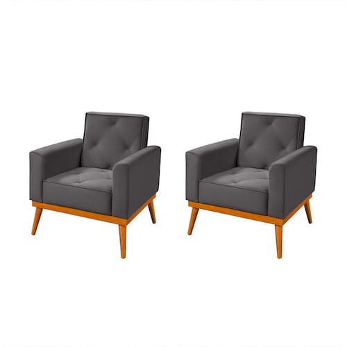 Kit 2 Poltronas em Veludo Florença Grafite - Cinza