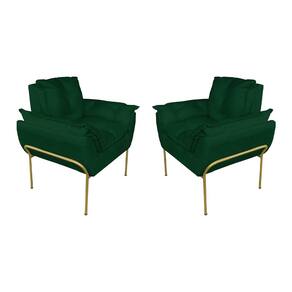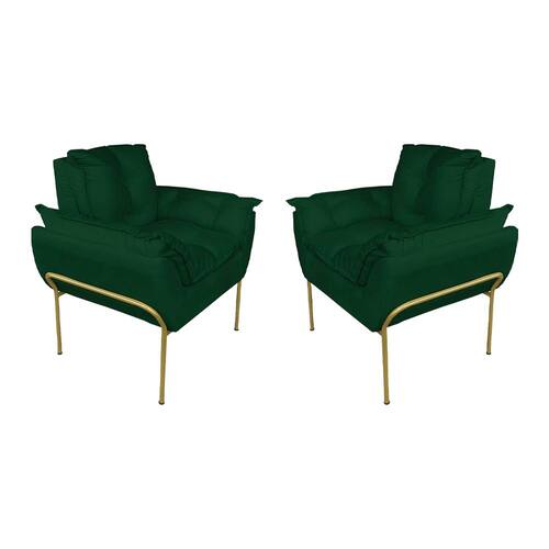 Kit 2 Poltronas Escritório Base Dourada Suede Verde - Vallisa Decor