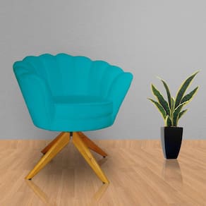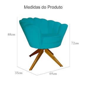 Kit 2 Poltronas Estofada Com Base Giratória de Madeira Pétala Veludo Azul Turquesa - LM DECOR