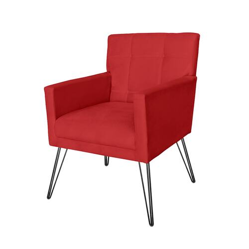 Kit 2 Poltronas Estofadas Para Escritório Pés de Ferro Onix Corano Vermelho - LM DECOR