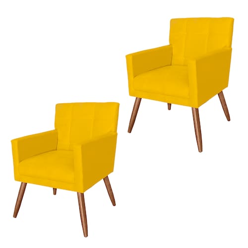 Kit 2 Poltronas Estofadas Para Salão de Beleza Onix Suede Amarelo - LM DECOR