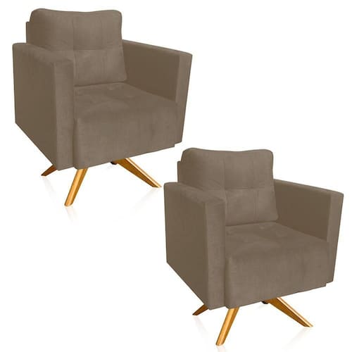 A poltrona Lívia é para aqueles que buscam comodidade e sofisticação. Ela promove um ótimo nível de conforto, graças ao seu design minimalista e aconchegante. Sem dúvidas ela dará aquele toque refinado que seu ambiente precisa! Uma dica legal é decorá-la com almofadas de diferentes tons e estilos, que mais combinem com sua personalidade, criando um ambiente ainda mais incrível! Sua estrutura é produzida em Base giratória de Madeira MA30 e percintas elásticas. Possui também preenchimento em espuma de excelente qualidade, densidade D-23 no assento e nos braços, no encosto de fibra siliconada. Conta com revestimento em Suede no tom Marrom Rato, um tecido fácil de limpar, que confere maior resistência, maciez e durabilidade à peça. Que tal levá-la para sua casa ou escritório! Escolha seu Kit 02 Poltronas Lívia e dê vida ao seu ambiente com conforto e elegância.