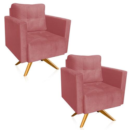 A poltrona Lívia é para aqueles que buscam comodidade e sofisticação. Ela promove um ótimo nível de conforto, graças ao seu design minimalista e aconchegante. Sem dúvidas ela dará aquele toque refinado que seu ambiente precisa! Uma dica legal é decorá-la com almofadas de diferentes tons e estilos, que mais combinem com sua personalidade, criando um ambiente ainda mais incrível! Sua estrutura é produzida em Base giratória de Madeira MA30 e percintas elásticas. Possui também preenchimento em espuma de excelente qualidade, densidade D-23 no assento e nos braços, no encosto de fibra siliconada. Conta com revestimento em Suede no tom Rosê, um tecido fácil de limpar, que confere maior resistência, maciez e durabilidade à peça. Que tal levá-la para sua casa ou escritório! Escolha seu Kit 02 Poltronas Lívia e dê vida ao seu ambiente com conforto e elegância.