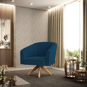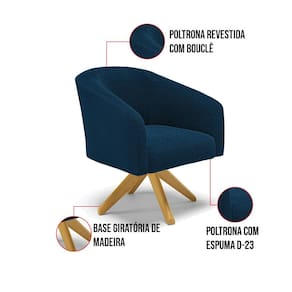 Kit 2 Poltronas Giratória Stella Bouclê Base de Madeira MA30 - D`Rossi - Azul