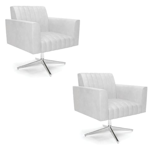 Quer uma decoração única e sofisticada? A Poltrona Viena é ideal para quem está em busca de um móvel versátil e diferenciado. Esse tipo de peça é ideal para ambientes modernos e descontraídos. Vem com uma ideia totalmente diferente, devido sua curva e forma suave, os detalhes gomados do tecido são tendências de decoração atuais. O tom Branco vem ganhando cada vez mais espaço no mercado, uma cor que traz elegância e combina com vários tipos de decoração. Uma dica legal de complemento é escolher almofadas que combinem com a poltrona. Sua estrutura é confeccionada em madeira de eucalipto proveniente de reflorestamento, o estofamento do assento é composto de espuma prorelax D-23 no encosto, e é revestido em Corano um tecido aconchegante, resistente e extremamente luxuoso. Sua sustentação é dada pela Base Giratória Cromada, suportando em média até 120 Kg. Crie um lindo efeito visual, em qualquer lugar da sua casa ou escritório! Garanta já seu Kit 2 Poltronas Viena.