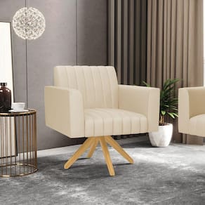 Quer uma decoração única e sofisticada? A Poltrona Viena é ideal para quem está em busca de um móvel versátil e diferenciado. Esse tipo de peça é ideal para ambientes modernos e descontraídos. Vem com uma ideia totalmente diferente, devido sua curva e forma suave, os detalhes gomados do tecido são tendências de decoração atuais. O tom Bege vem ganhando cada vez mais espaço no mercado, uma cor que traz elegância e combina com vários tipos de decoração. Uma dica legal de complemento é escolher almofadas que combinem com a poltrona. Sua estrutura é confeccionada em madeira de eucalipto proveniente de reflorestamento, o estofamento do assento é composto de espuma prorelax D-23 no encosto, e é revestido em Corino um tecido aconchegante, resistente e extremamente luxuoso. Sua sustentação é dada pela Base Giratória Madeira MA30, suportando em média até 115 Kg. Crie um lindo efeito visual, em qualquer lugar da sua casa ou escritório! Garanta já seu Kit 2 Poltronas Viena.