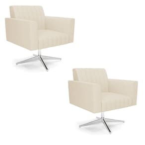 Kit 2 Poltronas Giratória Viena Gomada Linho Bege A19 Base Cromada - D'rossi