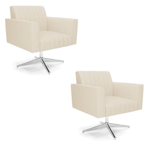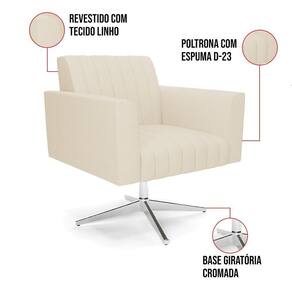 Kit 2 Poltronas Giratória Viena Gomada Linho Bege A19 Base Cromada - D`rossi