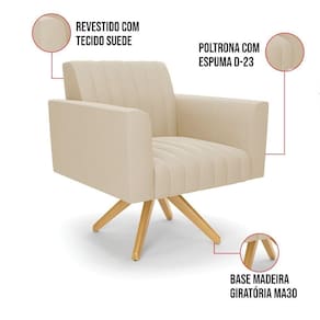 Quer uma decoração única e sofisticada? A Poltrona Viena é ideal para quem está em busca de um móvel versátil e diferenciado. Esse tipo de peça é ideal para ambientes modernos e descontraídos. Vem com uma ideia totalmente diferente, devido sua curva e forma suave, os detalhes gomados do tecido são tendências de decoração atuais. O tom Bege vem ganhando cada vez mais espaço no mercado, uma cor que traz elegância e combina com vários tipos de decoração. Uma dica legal de complemento é escolher almofadas que combinem com a poltrona. Sua estrutura é confeccionada em madeira de eucalipto proveniente de reflorestamento, o estofamento do assento é composto de espuma prorelax D-28 no encosto, e é revestido em Suede um tecido aconchegante, resistente e extremamente luxuoso. Sua sustentação é dada pela Base Giratória Madeira MA30, suportando em média até 115 Kg. Crie um lindo efeito visual, em qualquer lugar da sua casa ou escritório! Garanta já seu Kit 2 Poltronas Viena.