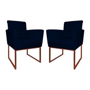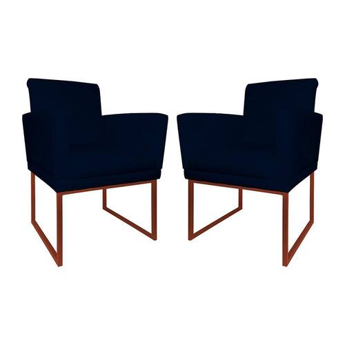 Kit 2 Poltronas Klara Sala Base Metálica Cobre Corano - Vallisa Decor - Azul Marinho