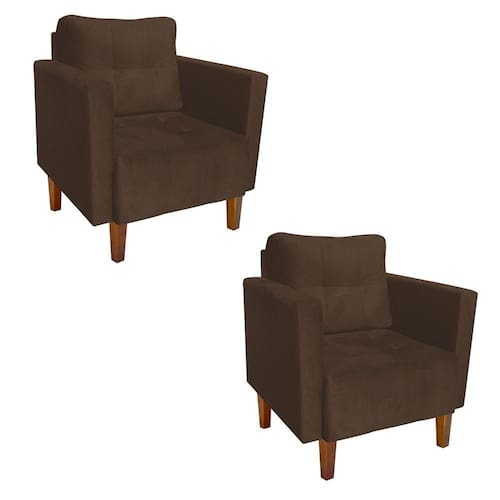 A poltrona Lívia é para aqueles que buscam comodidade e sofisticação. Ela promove um ótimo nível de conforto, graças ao seu design minimalista e aconchegante. Sem dúvidas ela dará aquele toque refinado que seu ambiente precisa! Uma dica legal é decorá-la com almofadas de diferentes tons e estilos, que mais combinem com sua personalidade, criando um ambiente ainda mais incrível! Sua estrutura é produzida em madeira reflorestada e percintas elásticas. Possui também preenchimento em espuma de excelente qualidade, densidade D-23 no assento e nos braços, no encosto de fibra siliconada e pés de madeira chanfrado Castanho. Conta com revestimento em Suede no tom Marrom, um tecido fácil de limpar, que confere maior resistência, maciez e durabilidade à peça. Que tal levá-la para sua casa ou escritório! Escolha seu Kit 02 Poltronas Lívia e dê vida ao seu ambiente com conforto e elegância.