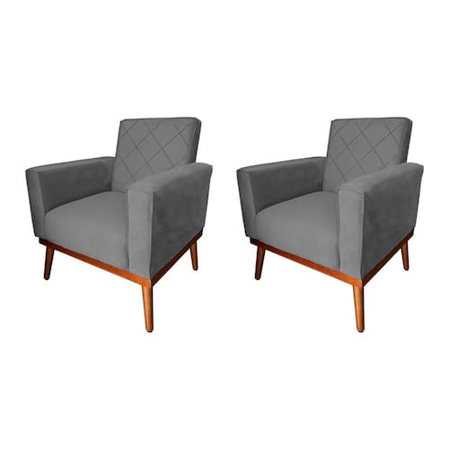 Kit 2 Poltronas Living Base em Madeira Maciça Caribe Veludo Cinza