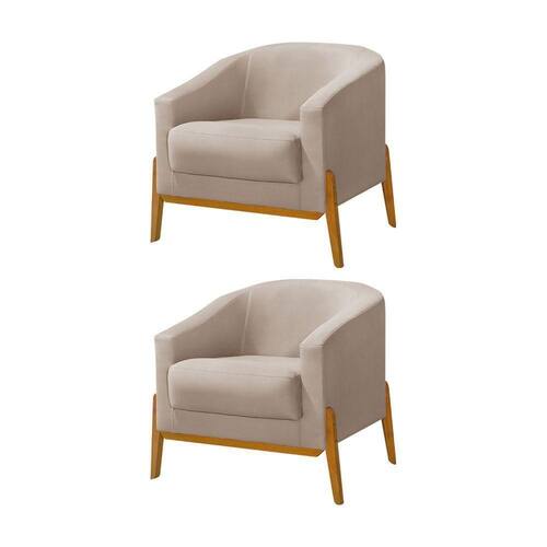 Kit 2 Poltronas Living Base Em Madeira Maciça Flórida Veludo Bege - Bege