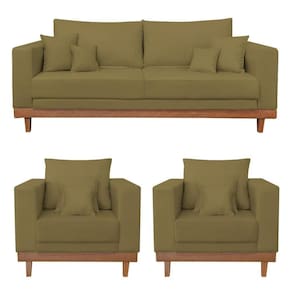 Você receberá 3 volumes, ou seja, um Kit 2 Poltronas Living + Sofá 2 Lugares com Base Madeira Suede