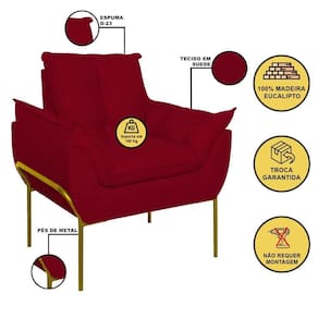 É Reclinável: Não | Desenho Do Tecido: Liso | Acessórios Incluídos: Não | É Sofá-Cama: Não | Estilo: Moderno | Cor Dos Pés: Dourado | Linha: Premium | Material do estofamento: Suede | Unidades Por Kit: 2 | Densidade Da Espuma Do Assento: D-23 | Material De Enchimento Do Encosto: Espuma | Requer Montagem: Não | Altura: 86,5 cm | Marca: Balaqui Decor | Tipo de Garantia: Garantia do Fabricante | Coleção de Antiguidade: Não | Móvel Dobrável: Não | Dimensão (A x L x C): 86,5 x 80 x 61 | Estofado: Suede | de Assentos: 2 | Duração da Garantia: 3 meses | Largura: 80 cm | País de Origem: | Profundidade: 61 cm | Peso do Item (itemWeight): 15 kg | Tipo de produto: Poltrona | Material: Madeira | Fabricante: Balaqui Estofados | Modelo: Poltrona Opala com Pés de Metal | Quantidade de Peças: 2 | Quantidade de caixas de embalagem: 2 | Peso suportado: 180 kg | Material dos pés: Metal | Materiais da estrutura: Madeira | É modular: Não | É Em forma de U: Não | É de canto: Não | É com chaise: Não | Quantidade de Lugares: 2 | Montagem: Montagem Completa Cor: Vermelho