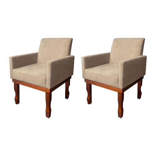 Kit 2 Poltronas Medusa Retrô Pés de Madeira Maciça Linho Bege