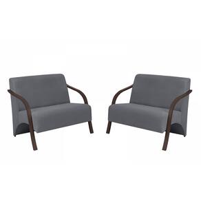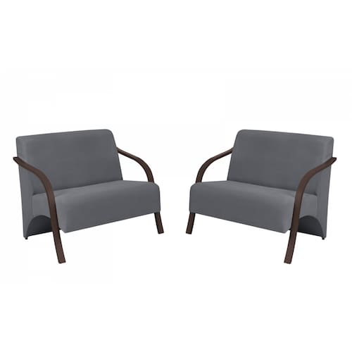 Kit 2 Poltronas Namoradeira 2 Lugares Vênus D Salla Suede Braço Madeira - Cinza