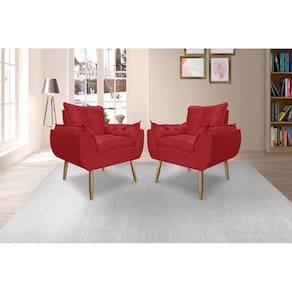 Kit 2 Poltronas Opala Decorativa Suede, Escritório, Consultório, Quarto, Recepção - Vermelho