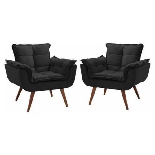 Kit 2 Poltronas Opalla Decorativa Reforçada Recepção Sala De Estar Suede - Preto