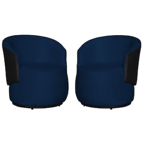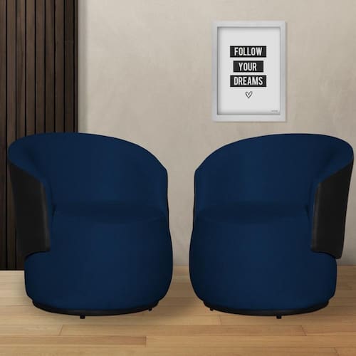 Kit 2 Poltronas Organica Beatriz Suede Azul Marinho C/ Composê Corano Preto - LM DECOR