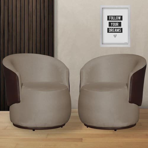 Kit 2 Poltronas Organica Beatriz Suede Cappuccino C/ Composê Corano Marrom - LM DECOR