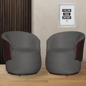 Kit 2 Poltronas Organica Beatriz Suede Cinza C/ Composê Corano Marrom - LM DECOR