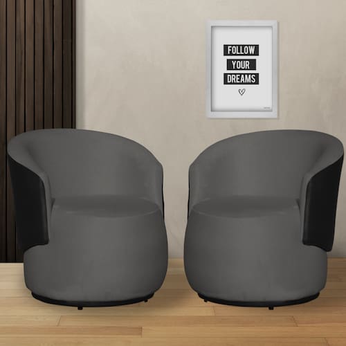 Kit 2 Poltronas Organica Beatriz Suede Cinza C/ Composê Corano Preto - LM DECOR