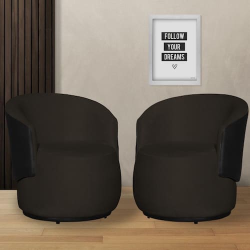 Kit 2 Poltronas Organica Beatriz Suede Marrom C/ Composê Corano Preto - LM DECOR