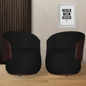 Kit 2 Poltronas Organica Beatriz Suede Preto C/ Composê Corano Marrom - LM DECOR