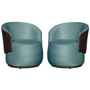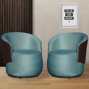Kit 2 Poltronas Organica Beatriz Veludo Azul Turquesa C/ Composê Corano Marrom - LM DECOR