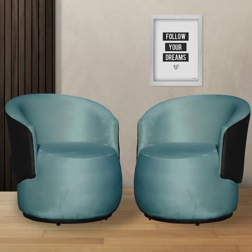 Kit 2 Poltronas Organica Beatriz Veludo Azul Turquesa C/ Composê Corano Preto - LM DECOR