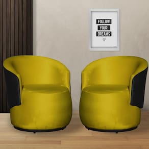 Kit 2 Poltronas Organica Beatriz Veludo Mostarda C/ Composê Corano Preto - LM DECOR