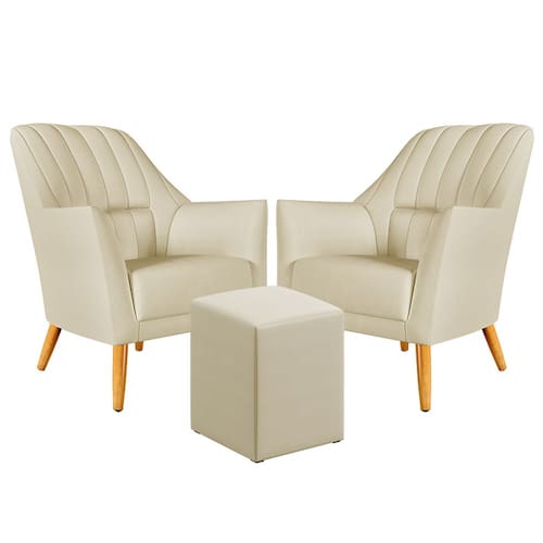 Kit 2 Poltronas Orion Bordada com Puff Izar Tecido Sued - Bege