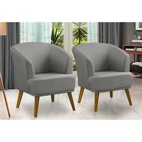 Kit 2 Poltronas Para Sala Decorativa Thais Linho Cinza Adonai Estofados