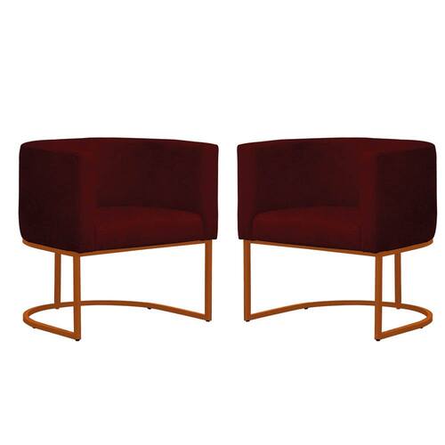 Kit 2 Poltronas Reforçada Decorativa Sala Gabriela Base Ferro Bronze Suede - Marsala