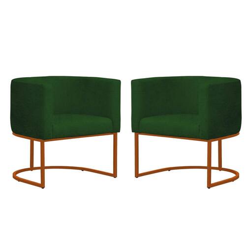 Kit 2 Poltronas Reforçada Decorativa Sala Gabriela Base Ferro Bronze Suede - Verde