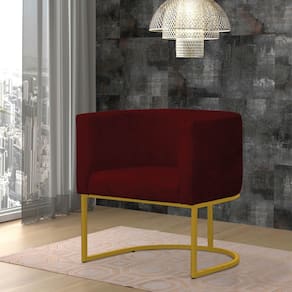Kit 2 Poltronas Reforçada Decorativa Sala Gabriela Base Ferro Dourada Suede Marsala