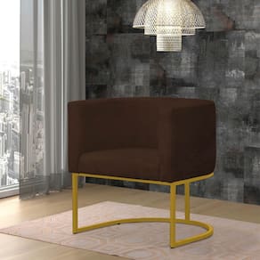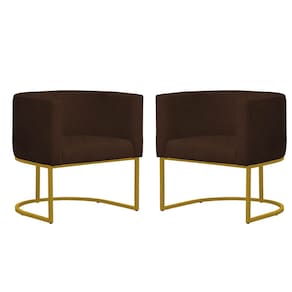 Kit 2 Poltronas Reforçada Decorativa Sala Gabriela Base Ferro Dourada Suede - Marrom
