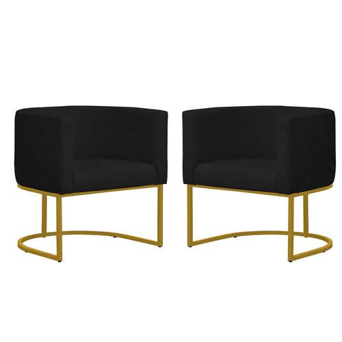 Kit 2 Poltronas Reforçada Decorativa Sala Gabriela Base Ferro Dourada Suede - Preto