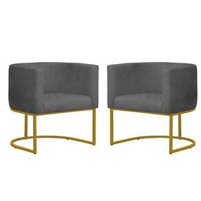 Kit 2 Poltronas Reforçada Decorativa Sala Gabriela Base Ferro Dourada Suede - Cinza
