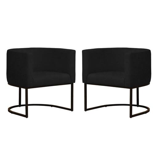 Kit 2 Poltronas Reforçada Decorativa Sala Gabriela Base Ferro Preta Suede - Preto