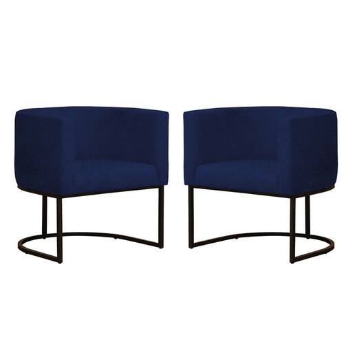 Kit 2 Poltronas Reforçada Decorativa Sala Gabriela Base Ferro Preta Suede - Azul Marinho