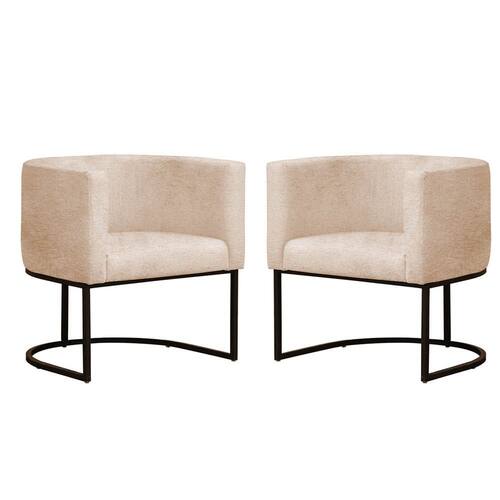 Kit 2 Poltronas Reforçada Decorativa Sala Gabriela Base Ferro Preta Suede - Bege