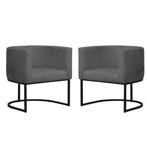 Kit 2 Poltronas Reforçada Decorativa Sala Gabriela Base Ferro Preta Suede - Cinza