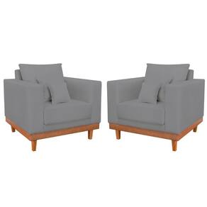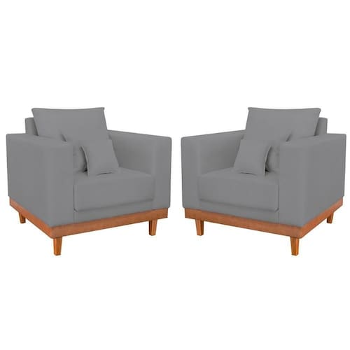 Você receberá 2 volumes, ou seja, um Kit 2 Poltronas Reforçada Linho Pés Base Madeira + Almofadas