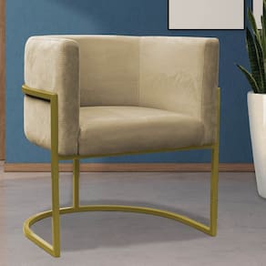 Kit 2 Poltronas Reforçadas Decorativa Sala Carla Base Ferro Dourada Suede - Bege