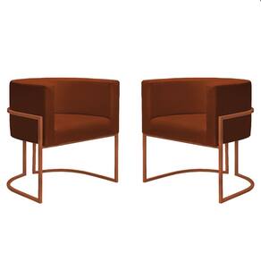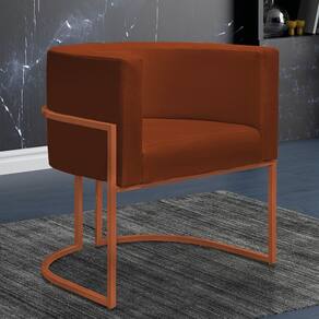 Kit 2 Poltronas Reforçadas Decorativa Sala Nayara Base Ferro Bronze Suede Terracota