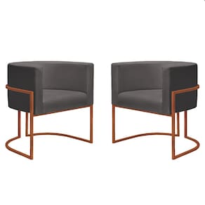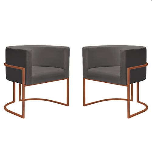 Kit 2 Poltronas Reforçadas Decorativa Sala Nayara Base Ferro Bronze Suede - Cinza