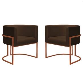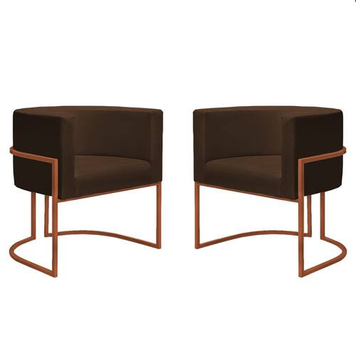 Kit 2 Poltronas Reforçadas Decorativa Sala Nayara Base Ferro Bronze Suede - Marrom