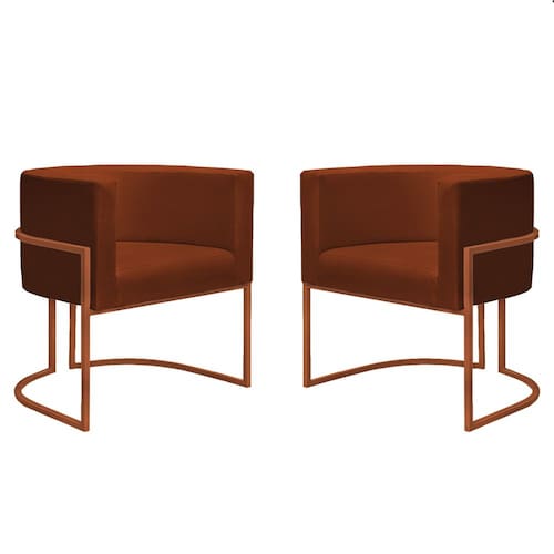 Kit 2 Poltronas Reforçadas Decorativa Sala Nayara Base Ferro Bronze Suede - Coral